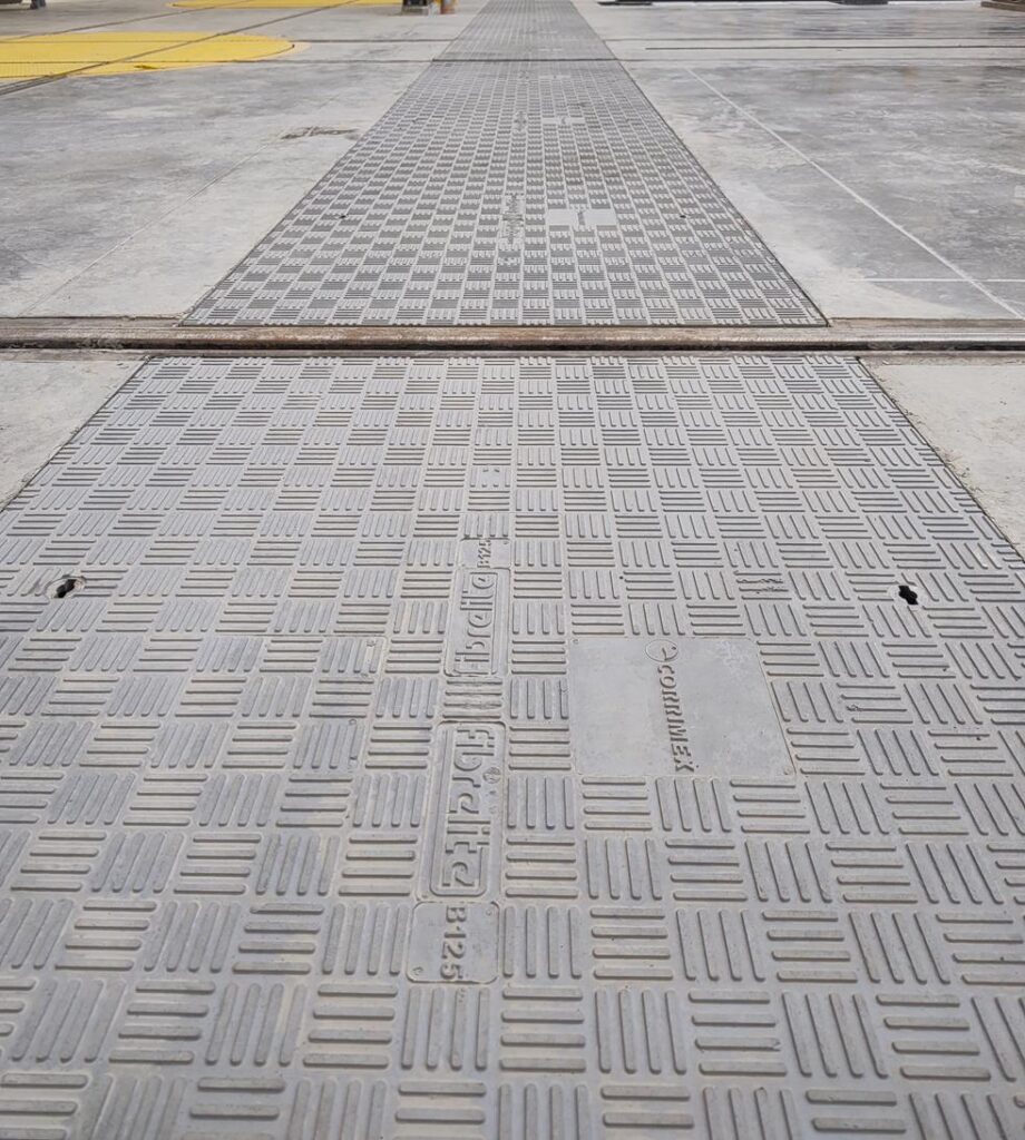 We wrześniu 2024 roku firma Budimex S.A. zwróciła się do naszej firmy z prośbą o przygotowanie oferty techniczno-cenowej na dostawę lekkich pokryw kompozytowych dla projektu przebudowy i modernizacji hali serwisowej zajezdni tramwajowej w Krakowie. Głównym wymaganiem inwestora było zabezpieczenie kanału serwisowego dla pojazdów szynowych przy użyciu pokryw w klasie obciążenia B125 (12,5 tony). Dodatkowo, istotnym kryterium była niska masa własna pokryw, która umożliwia łatwy dostęp do kanału przez obsługę techniczną.